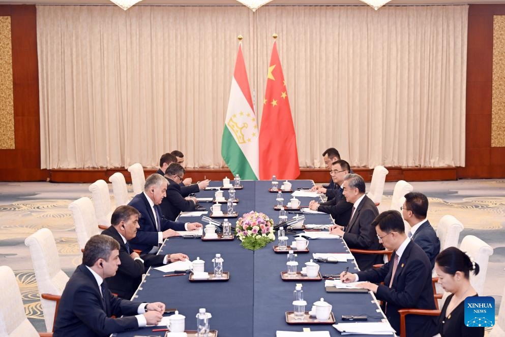 Chinese Foreign Minister Wang Yi held talks with Tajikistan’s Foreign Minister Sirojiddin Muhriddin in Tianjin, northern China, on Wednesday.