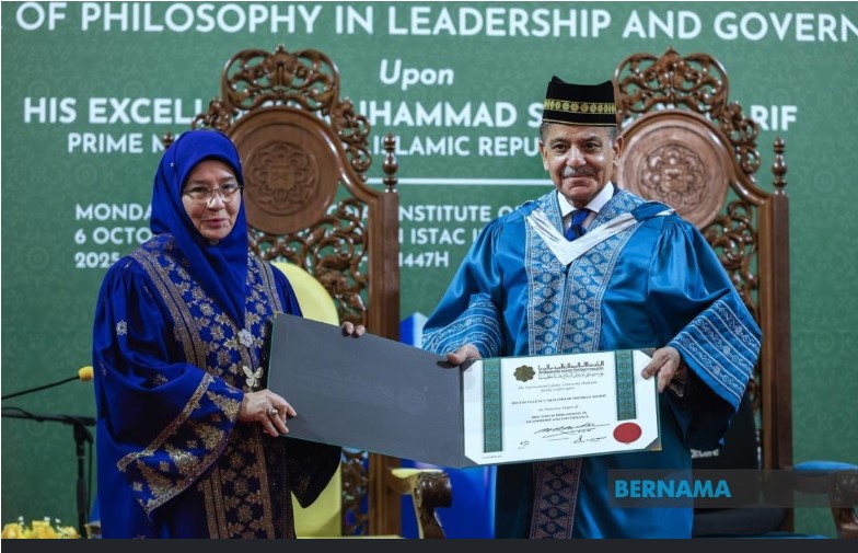 Prime Minister Shehbaz Sharif received an Honorary Doctorate in Leadership and Governance from the International Islamic University Malaysia (IIUM). The award recognises his exceptional leadership and decades-long service to public administration and nation-building.